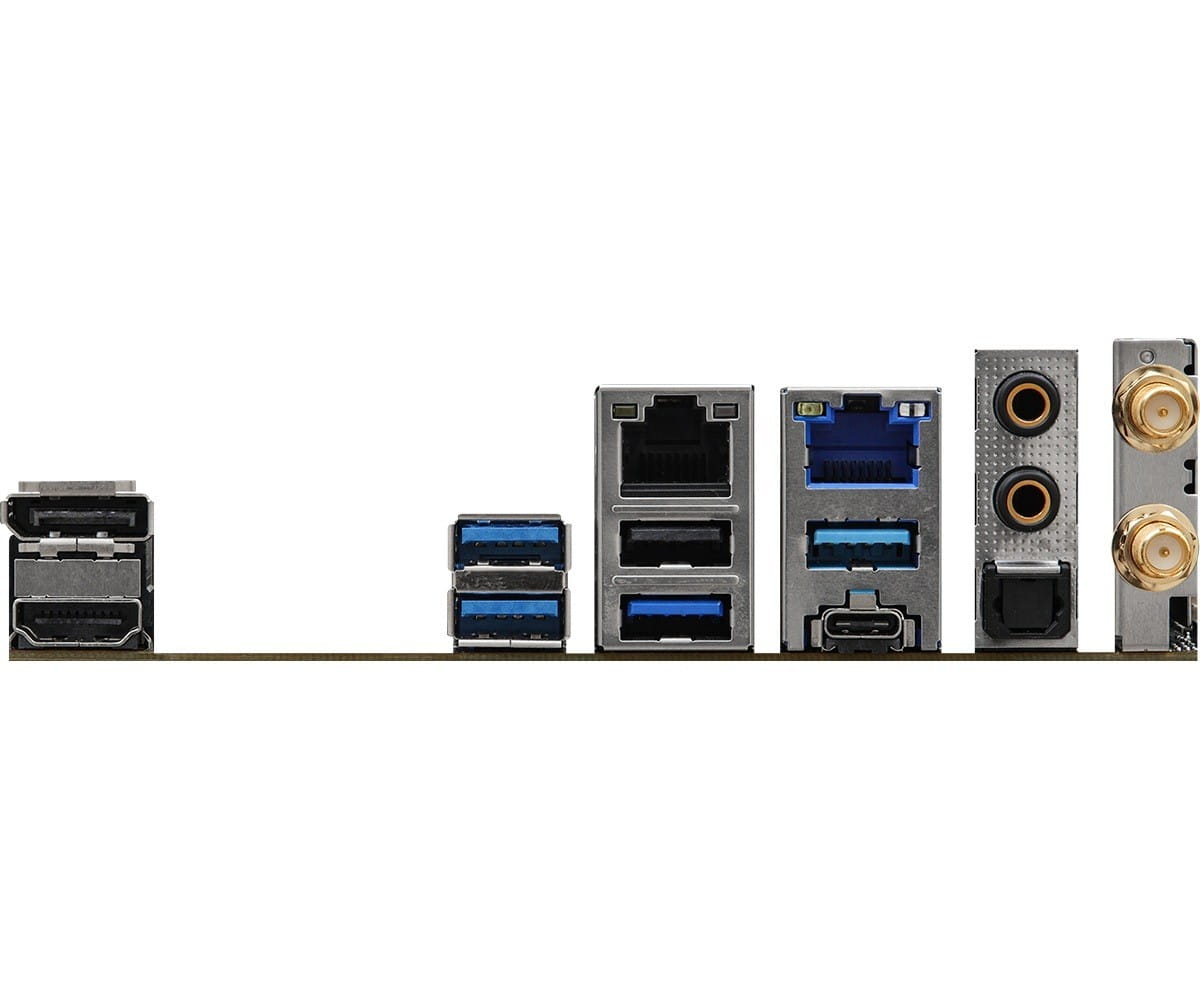 Złącza zewnętrzne: 1 x HDMI, 1 x DisplayPort, 1 x Line Out (przód), 1 x USB 2.0, 1 x MIC (przód), 2 x SMA, 1 x S/PDIF, 2 x RJ-45, 4 x USB 3.1