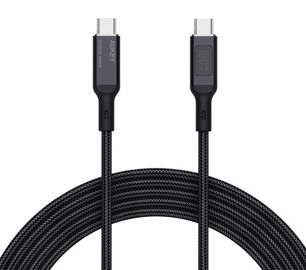 Przejmij pełną kontrolę nad ładowaniem urządzeń kabel USB-C z wyświetlaczem LED firmy Aukey, wyświetla informację o aktualnej mocy ładowania. Możesz go użyć zarówno do ładowania laptopa, jak i telefonu, konsolowych joysticków oraz wszelkich innych urządzeń ze złączem USB-C.