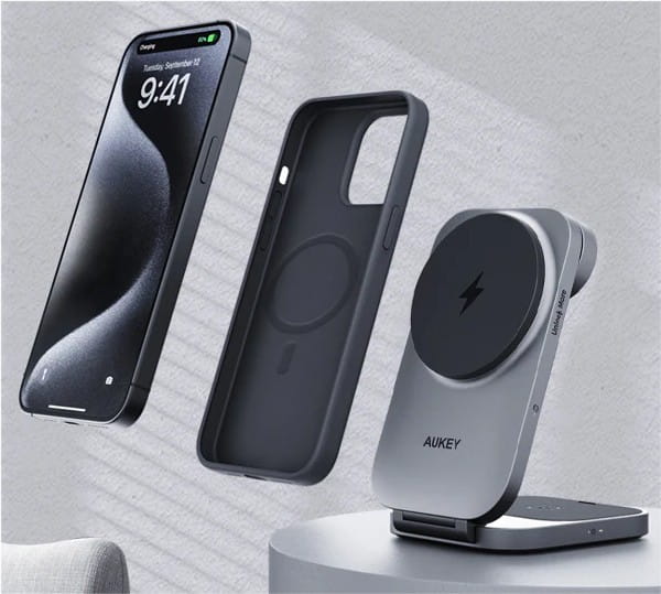 AUKEY LC-MC312 Slim 3w1 ładowarka bezprzewodowa MagSafe Qi2 15W + ładowarka PD 30W + Etui
