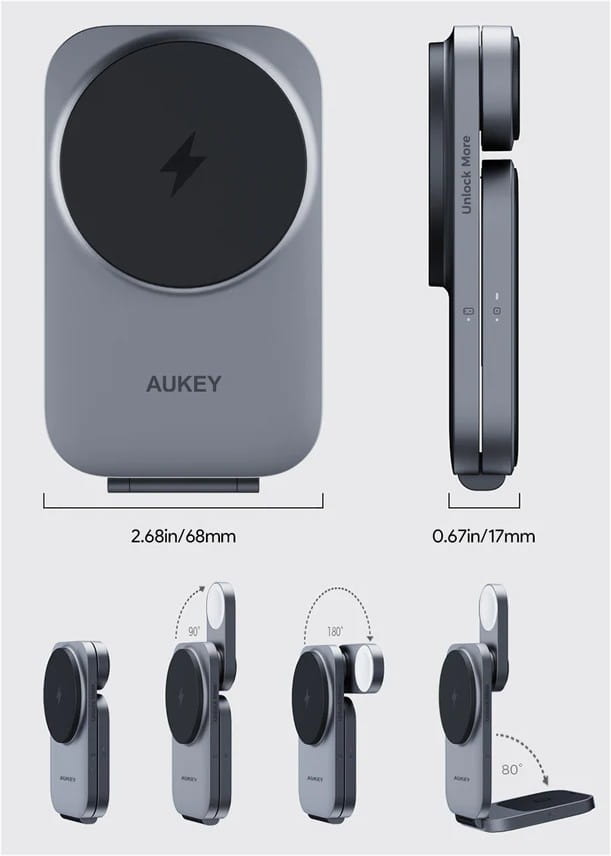 AUKEY LC-MC312 ŁADOWARKA BEZPRZEWODOWA 15W | 3w1 | USB-C | Qi2 (Qi 2.0)
