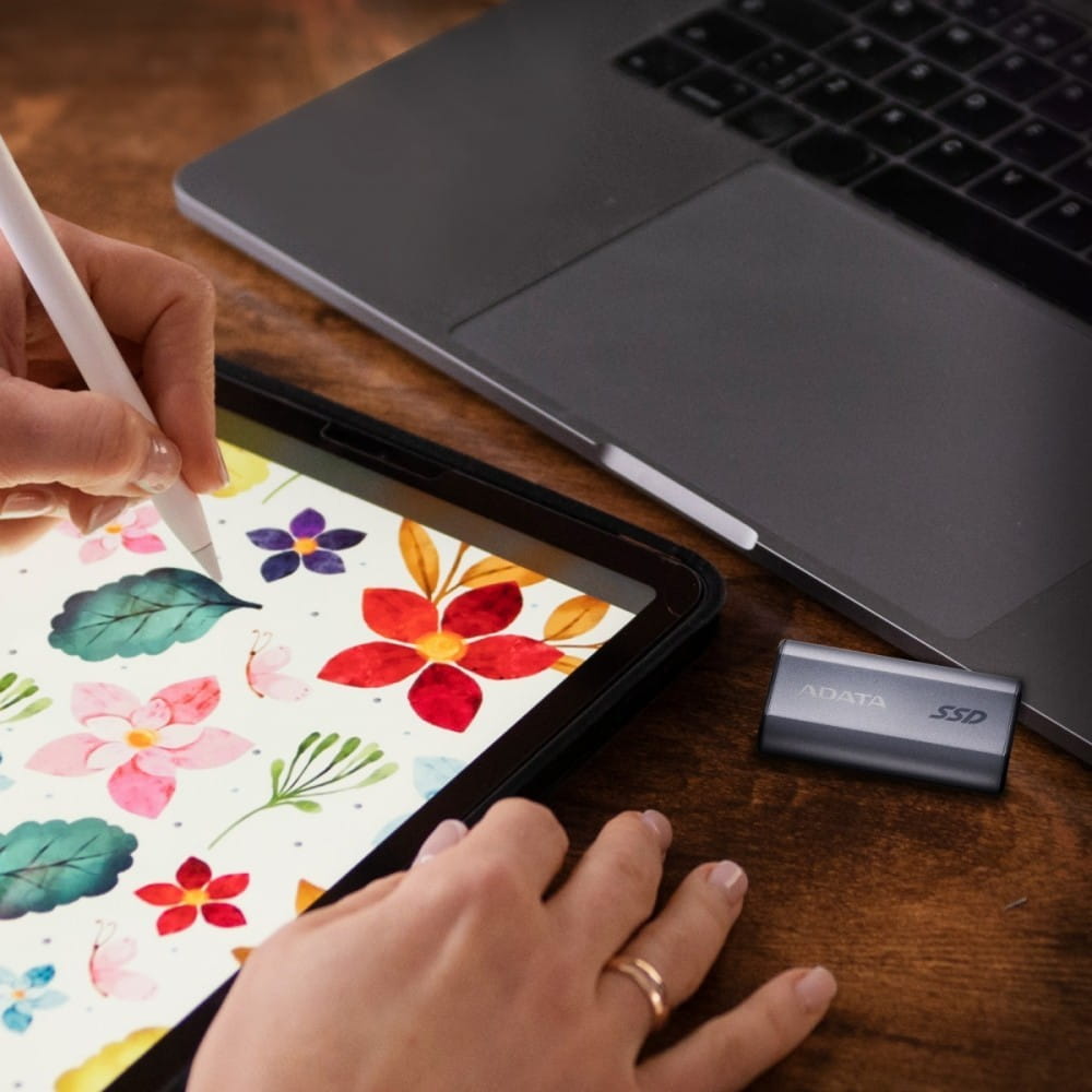 SC750 obsługuje specyfikacje szybkiej transmisji USB 3.2 Gen2 z szybkościami odczytu/zapisu sięgającymi 1050/1000 MB i przepustowością transmisji do 10 Gb na sekundę, co spełnia potrzeby twórców wideo i profesjonalnych fotografów w zakresie szybkiego dostępu w drodze. Można edytować duże pliki i uzyskiwać do nich dostęp bezpośrednio na SC750, co zapewnia płynną i nieprzerwaną pracę.