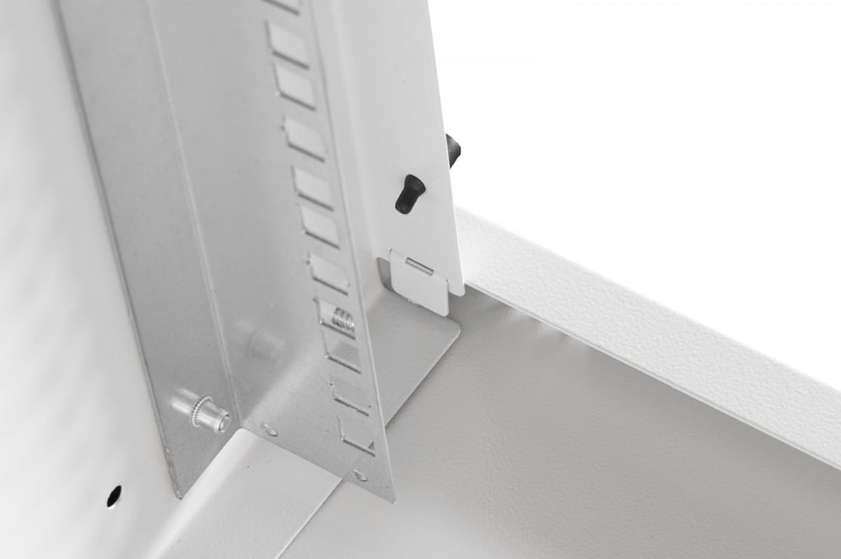 - Profile rack 483 mm (19") zamontowane z przodu wewnątrz szafy, galwanizowane