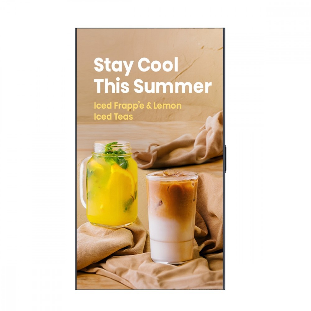 Wyświetlacz obsługuje zarówno orientację pionową (portrait), jak i poziomą (landscape), co pozwala na elastyczną instalację w sklepach, muzeach, na stadionach oraz w środowiskach biurowych, przy zachowaniu spójnej jakości obrazu 4K.
