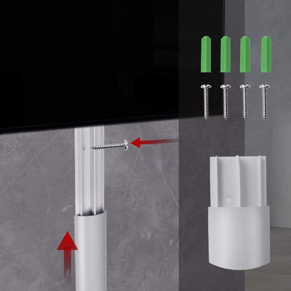 Listwa jest dwuelementowa, co oznacza, że składa się z podstawy montażowej oraz nakładki maskującej. Umożliwia to szybki i wygodny dostęp do kabli, np. w celu ich wymiany lub konserwacji. Listwę można zamocować za pomocą samoprzylepnego paska, co jest idealnym rozwiązaniem do szybkiej i bezinwazyjnej instalacji na gładkich powierzchniach, lub za pomocą dołączonych kołków i wkrętów zapewniając stabilność nawet przy większym obciążeniu lub na trudniejszych podłożach.
