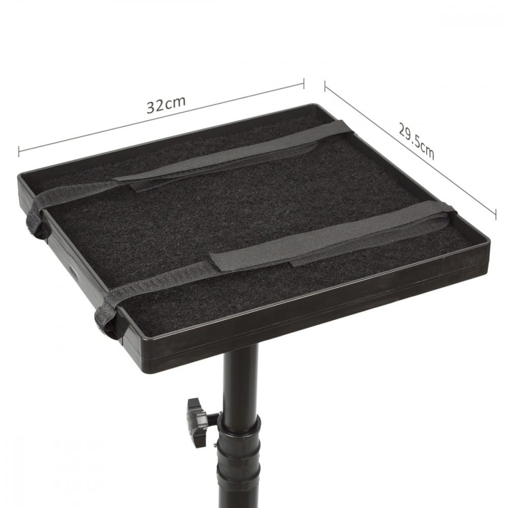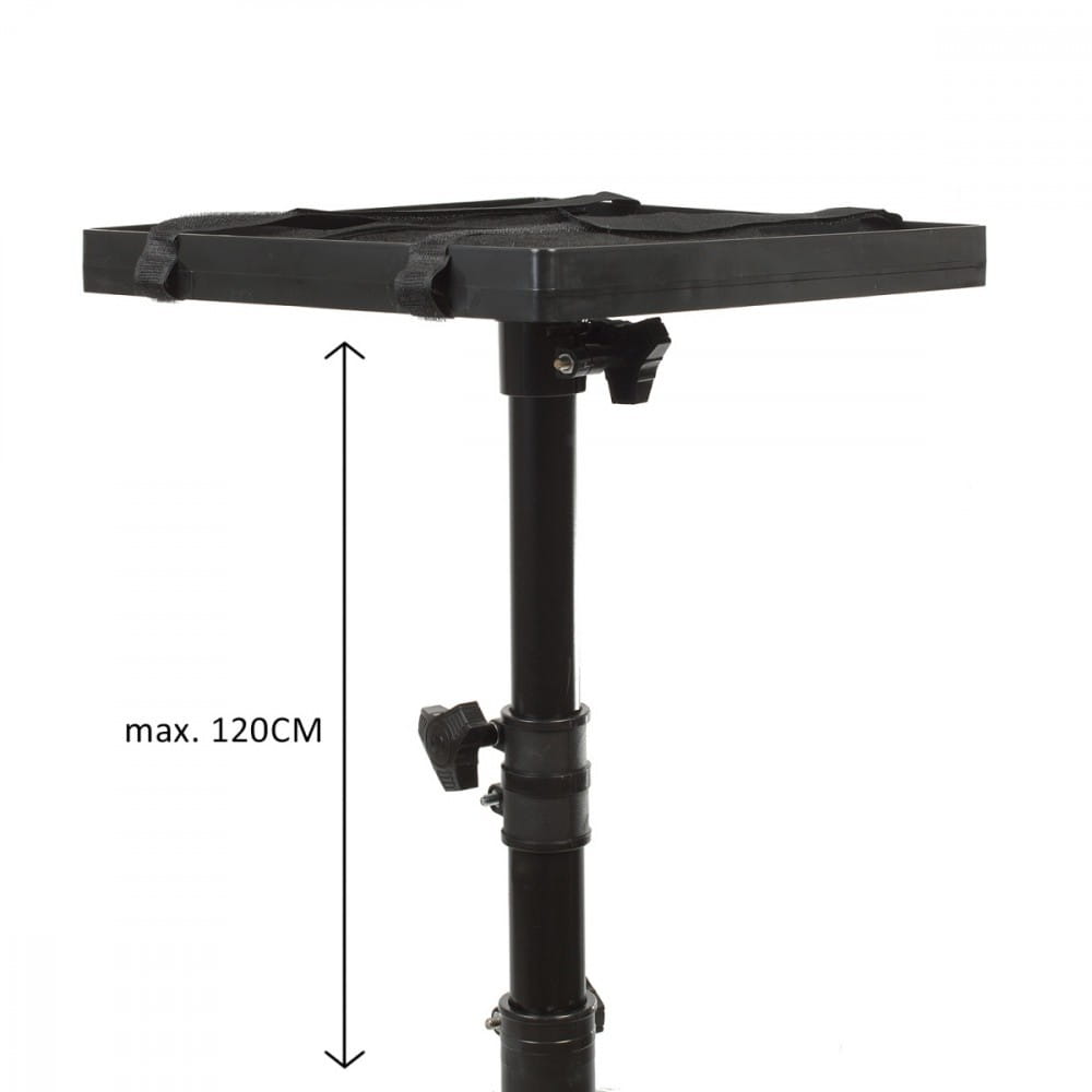 Regulacja wysokości pozwala dopasować stand do indywidualnych potrzeb użytkownika. Obramowana tacka zapobiega zsunięciu się projektora, który dodatkowo można zabezpieczyć pasami na rzepy. Idealne rozwiązanie do prezentacji szkolnych, biznesowych jak i domowych zastosowań. Stojak wykonany został ze stali pomalowanej proszkowo na kolor czarny. Nadaje się do projektorów różnych marek, tj: BenQ, Epson, Acer, Overmax, NEC, Optoma, LG, Sony i wielu innych.