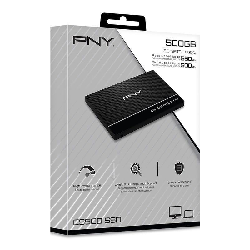 PNY CS900 to idealne rozwiązanie do modernizacji standardowego dysku półprzewodnikowego (SSD) z dysku twardego (HDD). CS900 zapewnia wszystkie najbardziej poszukiwane funkcje w doskonałej cenie i jest przeznaczony do łatwej i niedrogiej wymiany dysku twardego w systemie PC, aby pomóc skrócić czas rozruchu, szybsze uruchamianie aplikacji i lepszą ogólną wydajność systemu. Brak ruchomych części sprawia, że PNY CS900 jest bardzo wytrzymały, mniej podatny na awarie i objęty 3-letnią gwarancją.