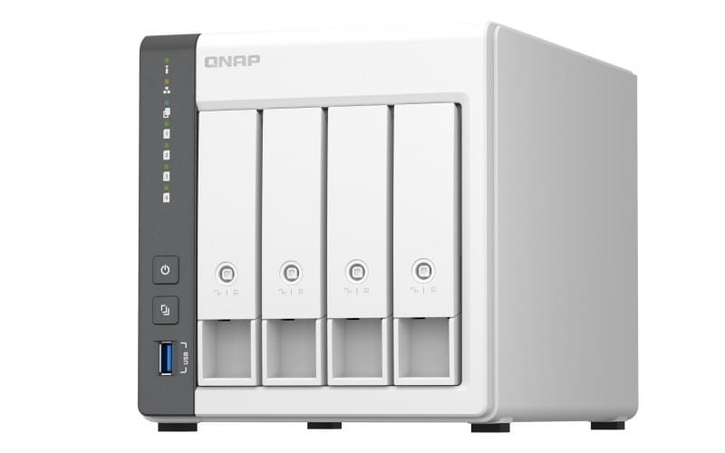 Wyposażony w czterordzeniowy procesor ARM Cortex-A55 o taktowaniu 2 GHz, wbudowaną pamięć RAM 4 GB, jeden port Gigabit LAN, jeden port 2,5 Gigabit LAN oraz obsługę czterech dysków twardych SATA 6 Gb/s, model TS-433 zapewnia niezawodną wydajność odczytu/zapisu dla różnych zastosowań serwera NAS w domu i w firmie. Model TS-433 zapewnia funkcję szyfrowania z przyspieszeniem sprzętowym AES-NI 256 zarówno dla pełnych woluminów NAS, jak i folderów współdzielonych, zwiększając wydajność systemu i zabezpieczając poufne dane.