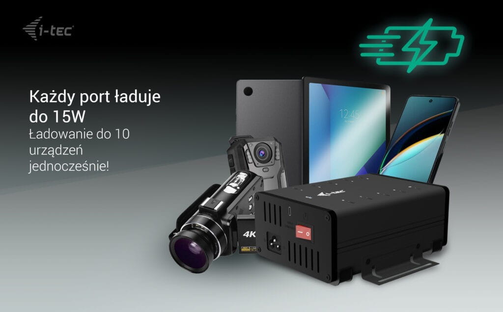 - 10 portów USB-C, wszystkie obsługujące ładowanie 15 W